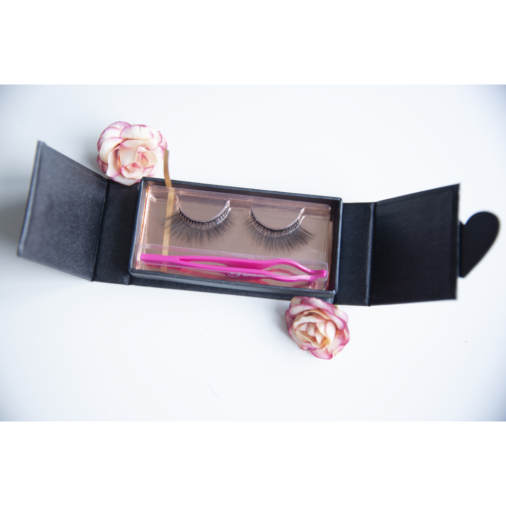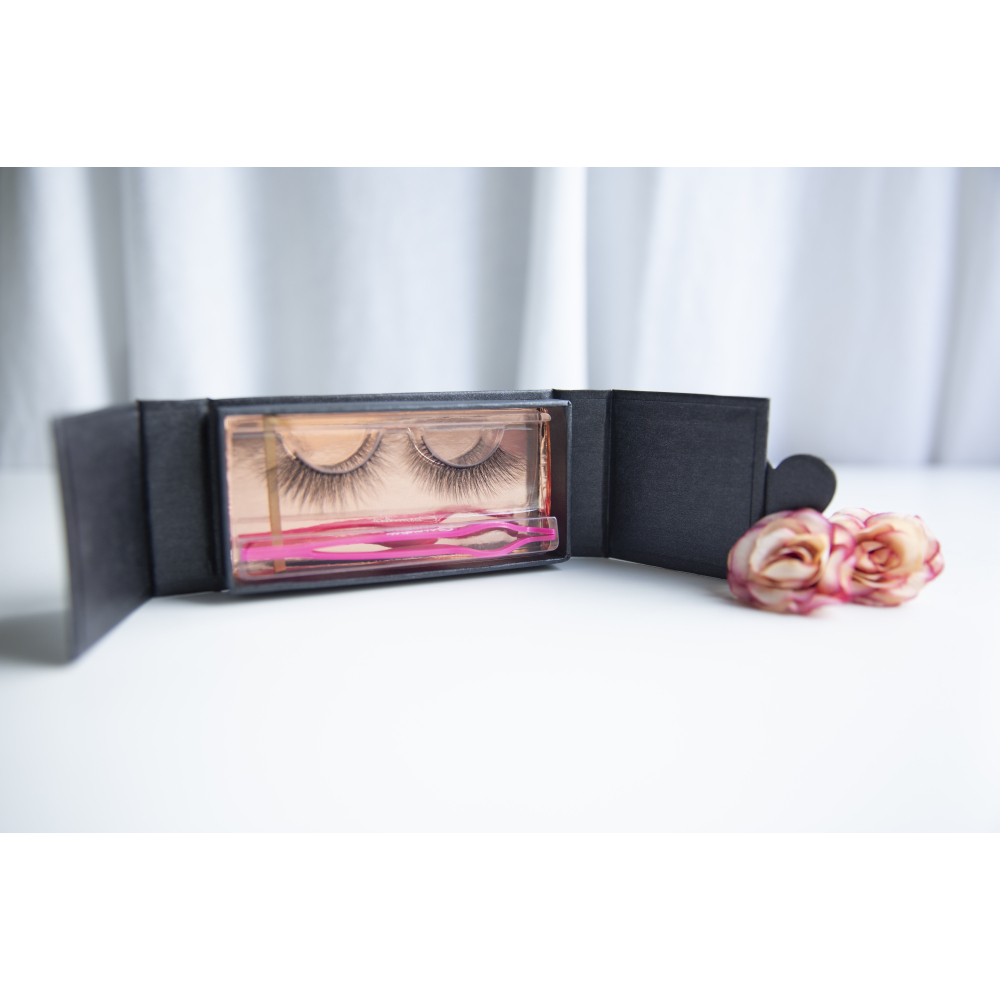 Práctica y hermosa caja de almacenamiento negra para mantener tus pestañas libres de polvo.